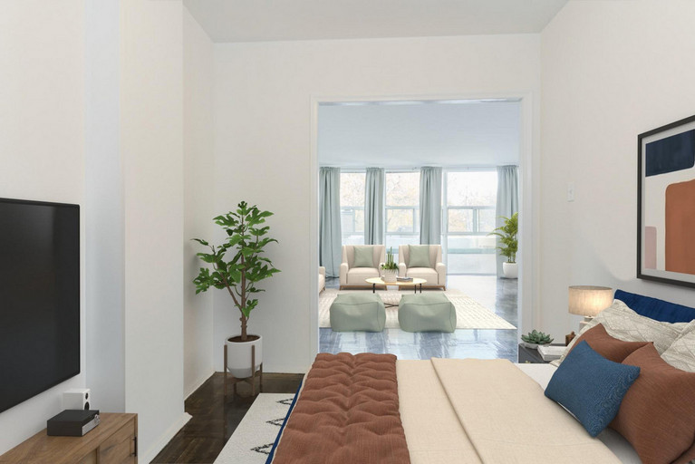 Lawren Harris Park is right behind the building offering plenty of green space to enjoy. Tennis courts, a soccer field, and Manulife Gardens are just steps away. Transportation in the area includes transit stops steps from the building and subway stations a short walk away.