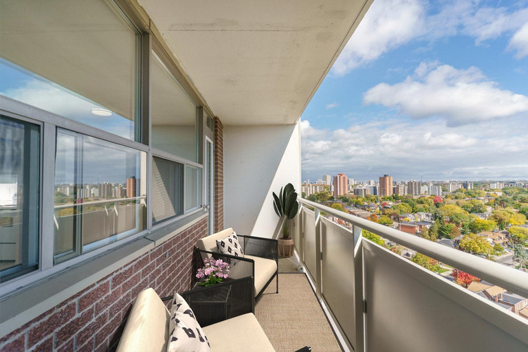 There are several bus stops steps from the building and the Eglinton subway station is just a 20-minute walk or 10-minute bus ride away.